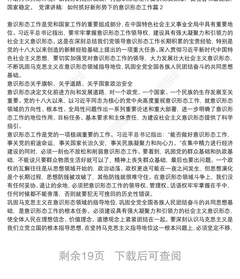 工圖網提供黨課講稿:如何抓好新形勢下的意識形態工作8篇供會員免費下載。更多精彩黨課PPT素材,盡在工圖網。