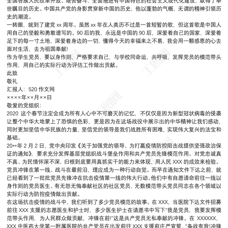 2020預備黨員思想匯報 2020預備黨員轉正申請書 預備黨員思想匯報2020第一季度三篇