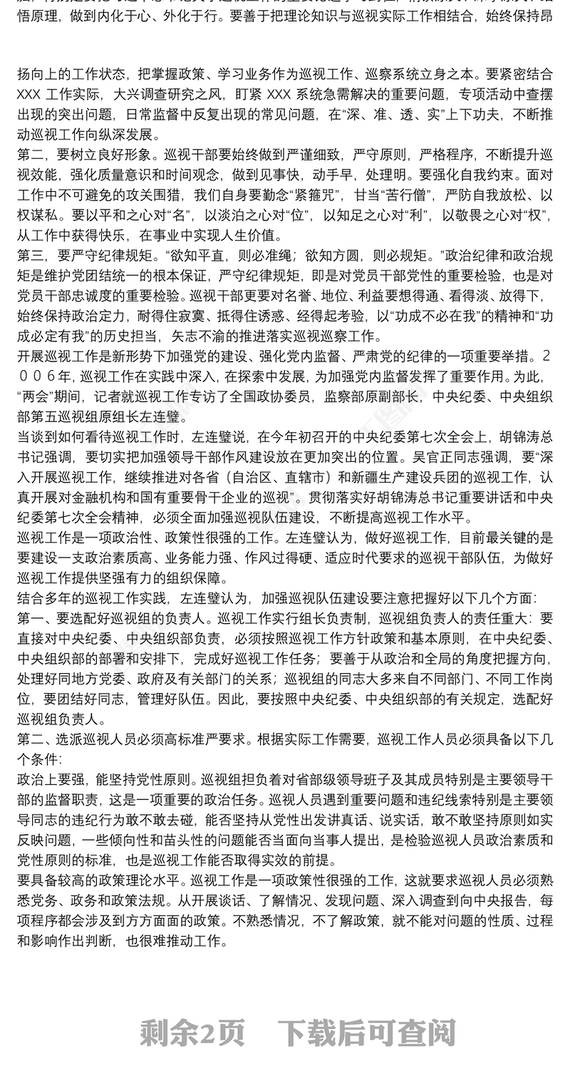 工圖網提供20xx年加強巡視巡察隊伍建設發言提綱供會員免費下載。更多精彩黨課PPT素材,盡在工圖網。
