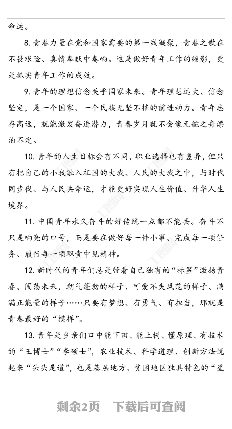 工圖網提供公文寫作材料:青春奮斗類金句供會員免費下載。更多精彩黨課PPT素材,盡在工圖網。