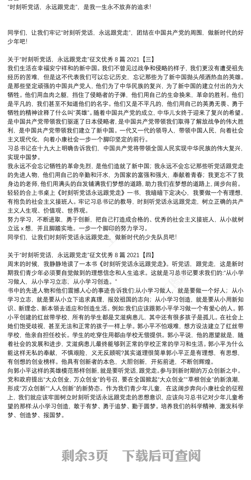 工圖網提供關于“時刻聽黨話,永遠跟黨走”征文優秀8篇2021供會員免費下載。更多精彩黨課PPT素材,盡在工圖網。