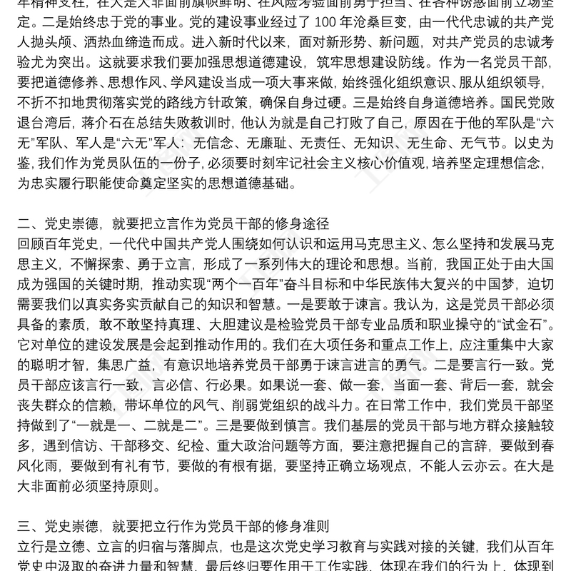 2021年黨史學習教育“學史崇德”專題研討交流發言材料 Array