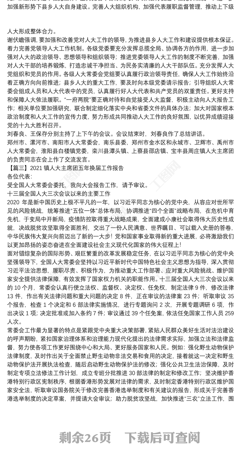 2021鎮(zhèn)人大主席團五年換屆工作報告范文(精選15篇) Array
