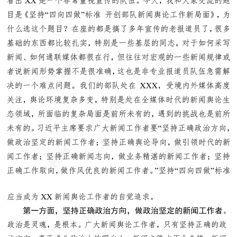 公文范文 > 堅持“四向四做”標準開創部隊新聞輿論工作新局面.DOCX