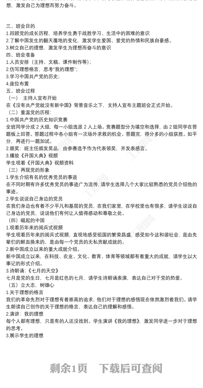 工圖網提供2021建黨100周年主題班會教案3篇供會員免費下載。更多精彩黨課PPT素材,盡在工圖網。