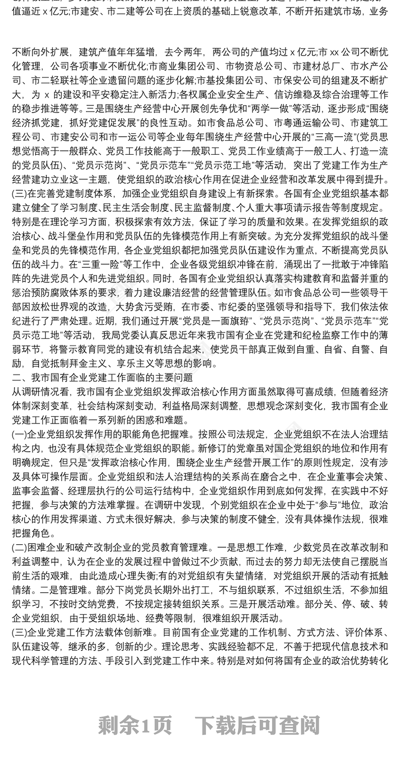 國(guó)有企業(yè)黨建工作調(diào)研報(bào)告范文