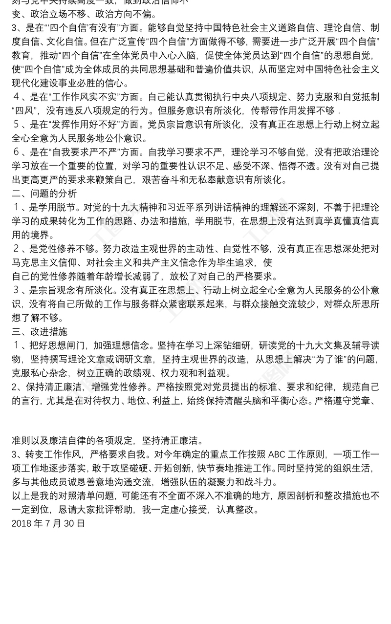 政治功能強不強、“四個意識”牢不牢、“四個自信”有沒有、工作作風實不實查擺問題,整改措施