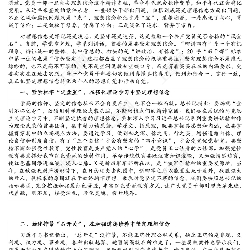 堅定理想信念嚴守政治底線以忠誠擔當的干勁加強隊伍黨風廉政建設廉政黨課講稿包含
