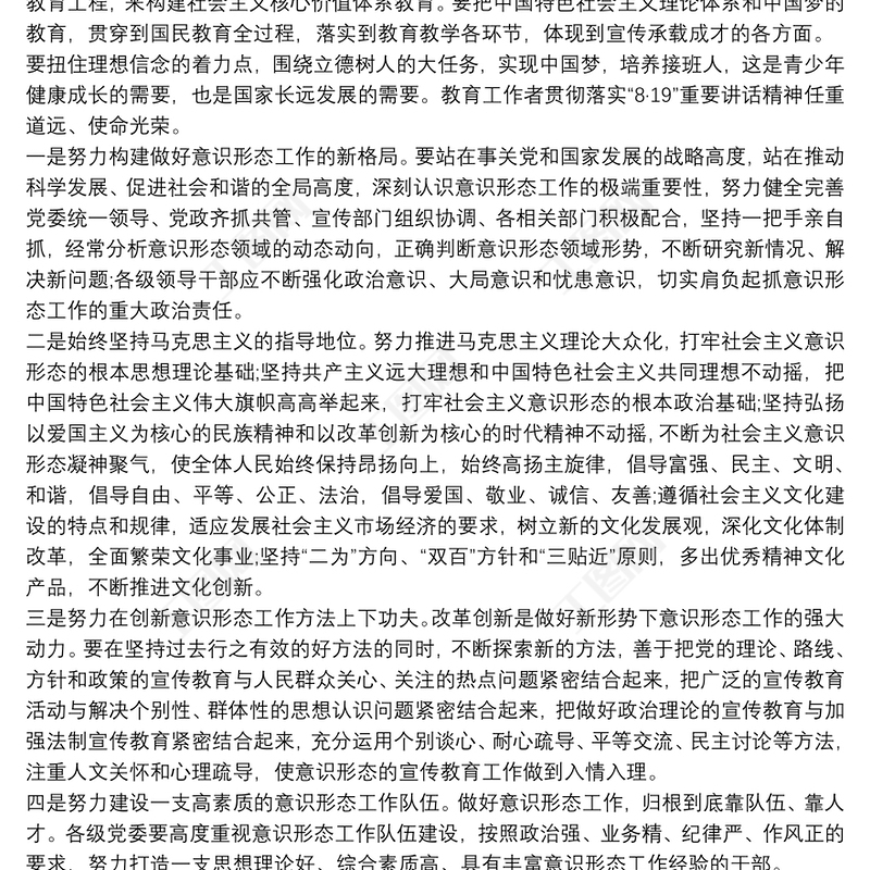 > 公文范文 > 學(xué)校意識(shí)形態(tài)工作主要內(nèi)容 學(xué)校意識(shí)形態(tài)工作主要內(nèi)容3篇.DOCX 【圖片、文字、動(dòng)畫均可編輯】