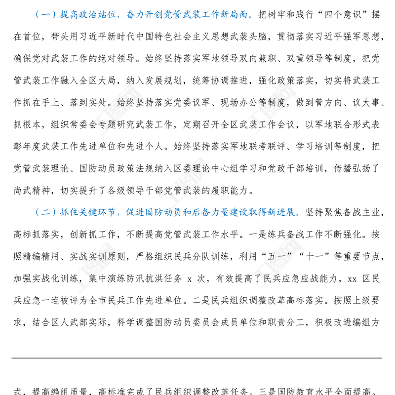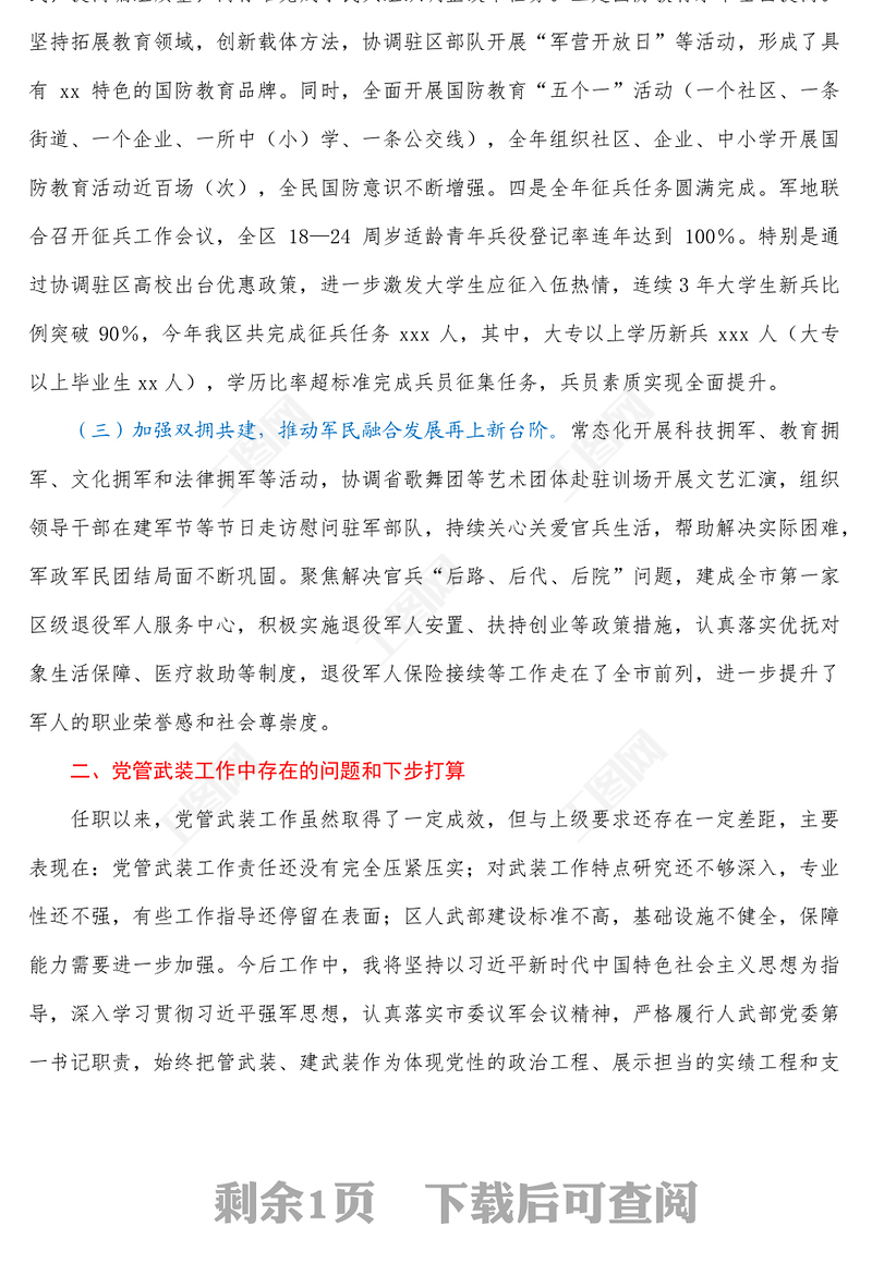 區委書記書記、人武部黨委第一書記2021年黨管武裝工作述職報告包含