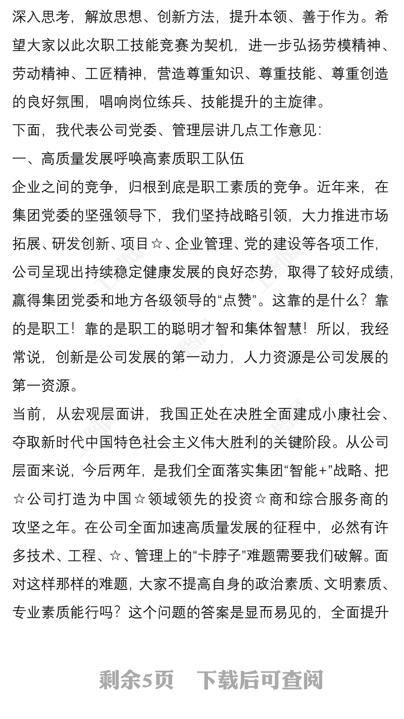 工圖網(wǎng)提供2021在公司第一屆“職工技能競賽啟動(dòng)儀式上的講話供會(huì)員免費(fèi)下載。更多精彩黨課PPT素材,盡在工圖網(wǎng)。