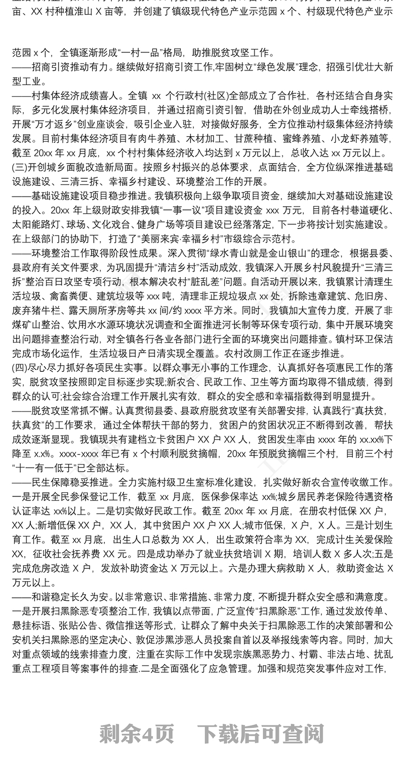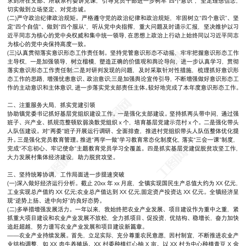鄉鎮黨委副書記、鎮長述職述德述廉述法報告包含