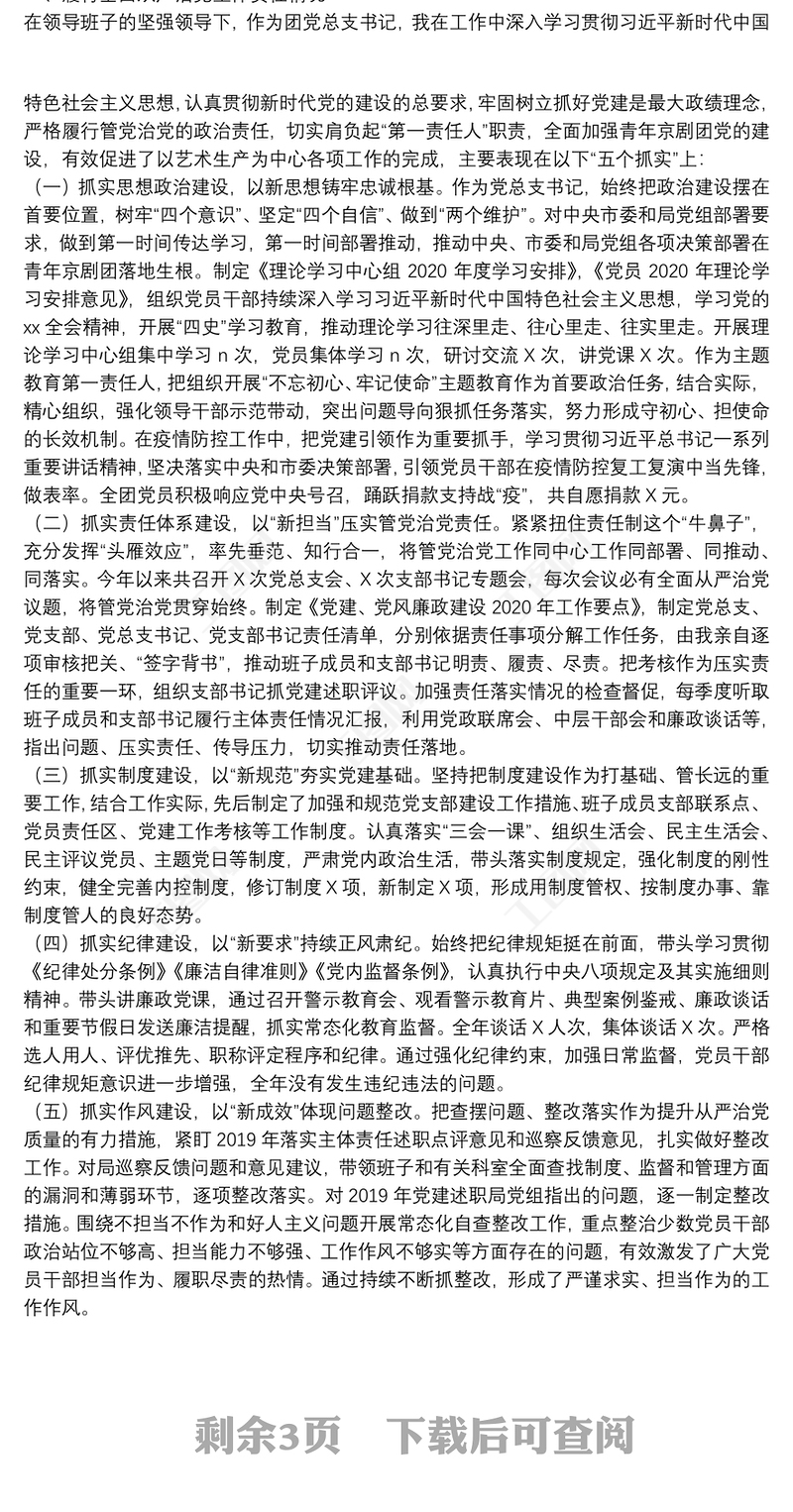 落實全面從嚴治黨主體責任黨內監督個人情況報告