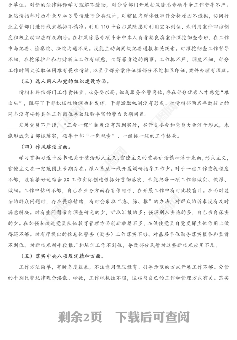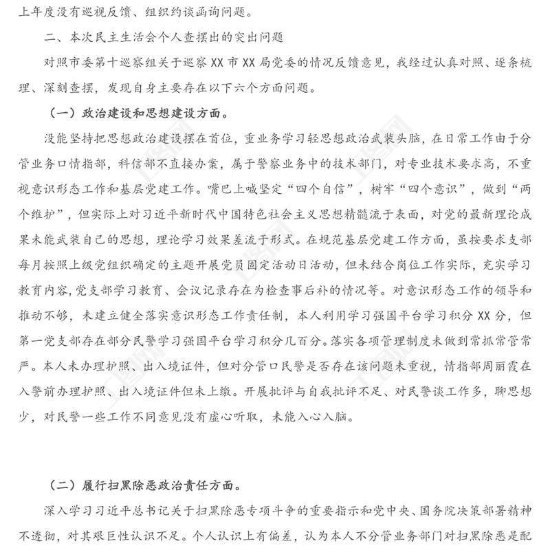 公安局黨委領導巡察問題整改專題民主生活會個人對照檢查材料范文包含