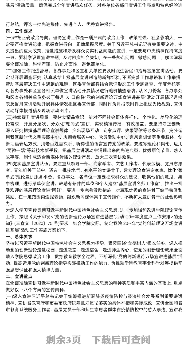 區“黨的創新理論萬場宣講進基層”活動實施方案包含