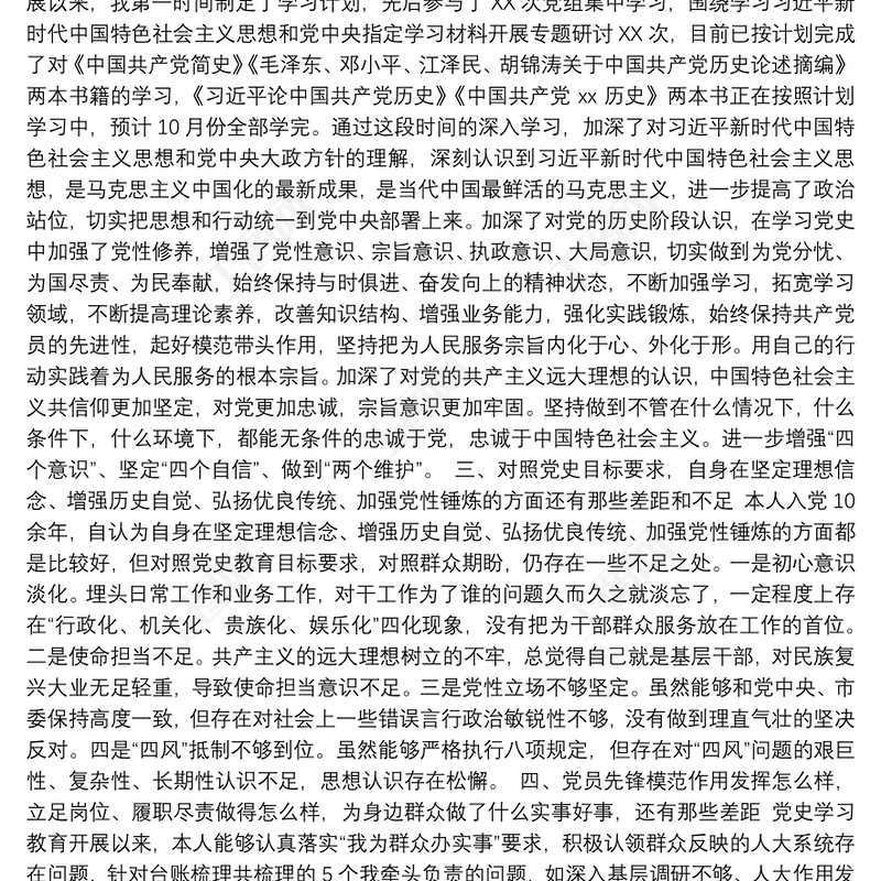 人大副主任黨史學(xué)習(xí)教育專題組織生活會個人檢視剖析材料