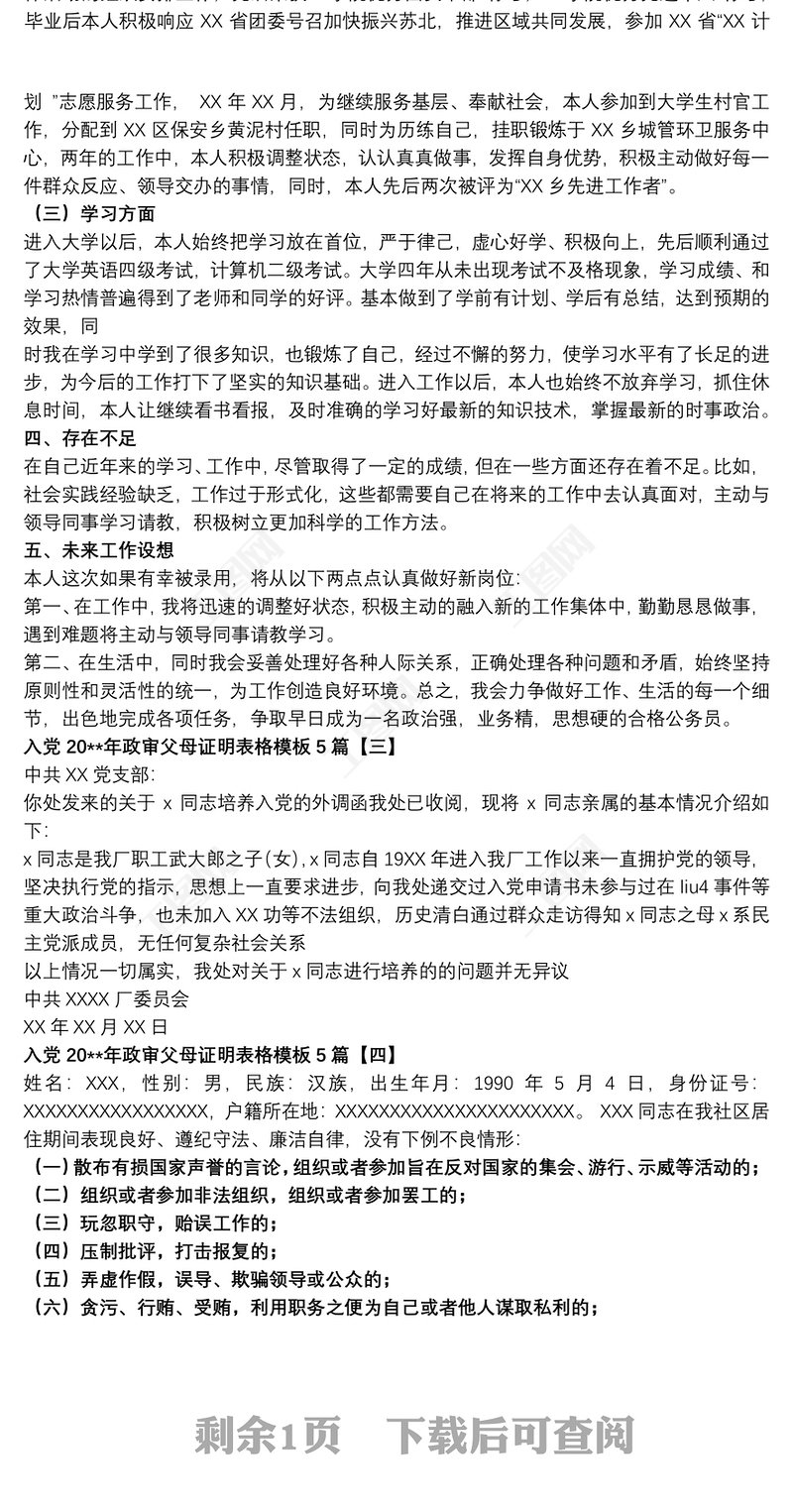入黨介紹人的證明材料 入黨函調父母證明材料包含