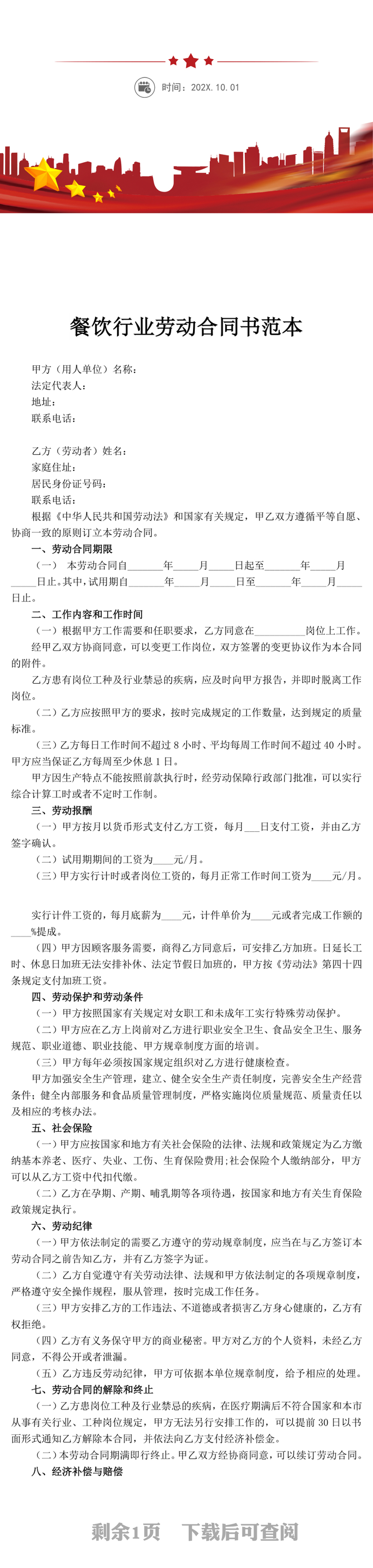 工圖網提供餐飲行業勞動合同書范本供會員免費下載。更多精彩黨課PPT素材,盡在工圖網。