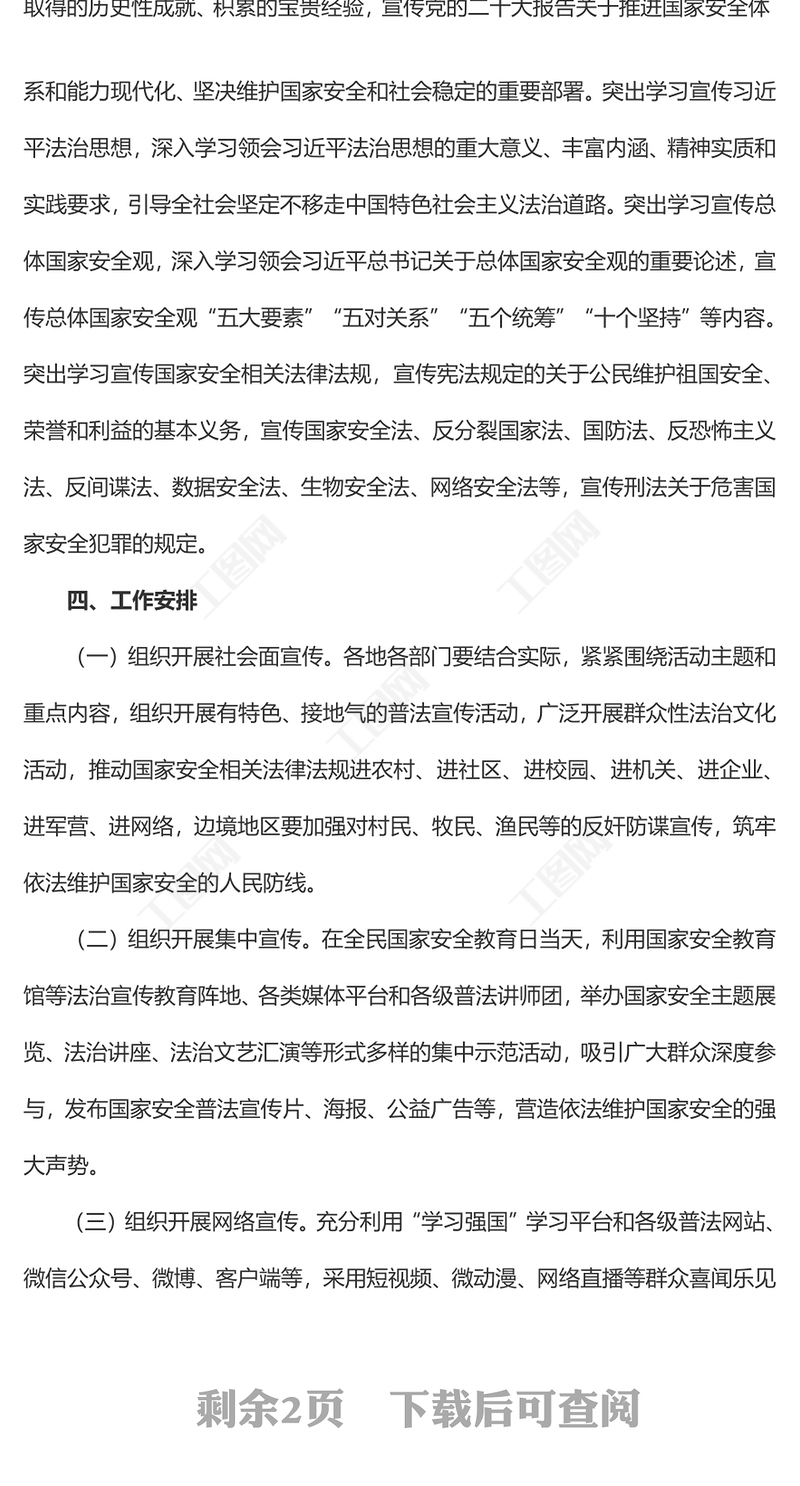 首頁 > WORD文檔 > 黨課講稿 > 2023全民國家安全教育日PPT大氣簡潔全面加強(qiáng)國家安全教育普法宣傳活動課件(講稿).DOCX 【圖片、文字、動畫均可編輯】