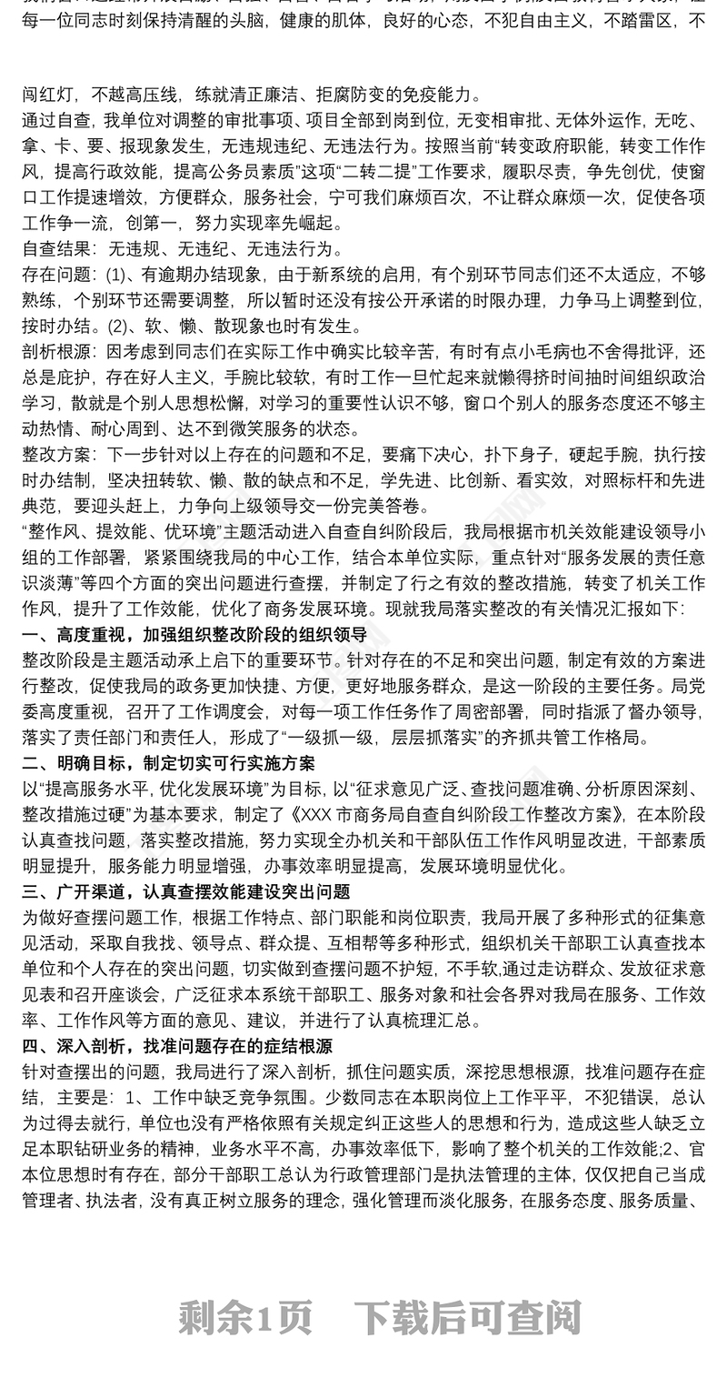 2021年交通執(zhí)法個(gè)人自查自糾報(bào)告2021鑄牢中華民族共同體意識(shí)自查整改報(bào)告2023主題教育工作自查整改報(bào)告2023開(kāi)展主題教育自查整改報(bào)告2023醫(yī)院主題教育自查整改報(bào)告2023個(gè)人主題教育自查整改報(bào)告2023主題教育自查整改報(bào)告范文2023主題教育個(gè)人自查自糾整改情況2023新時(shí)代中國(guó)特色社會(huì)主義思想個(gè)人自查自糾2023主題教育自查整改報(bào)告2023主題教育學(xué)習(xí)自查整改報(bào)告2023公司主題教育自查整改報(bào)告2023主題教育中自查整改報(bào)告2023黨員主題教育個(gè)人自查自糾