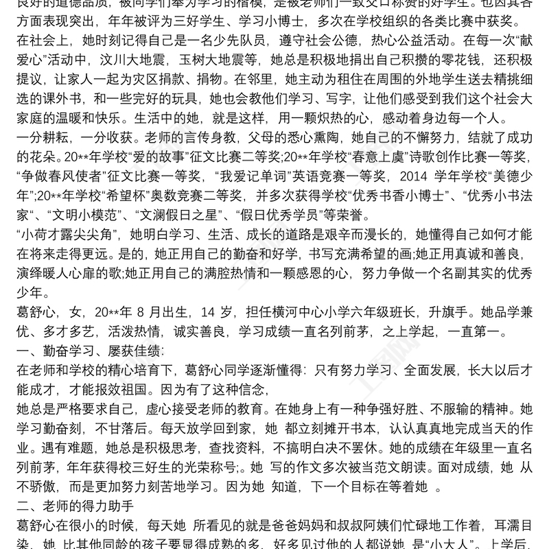 工圖網提供小學生優秀事跡1000字,小學生優秀事跡供會員免費下載。更多精彩黨課PPT素材,盡在工圖網。