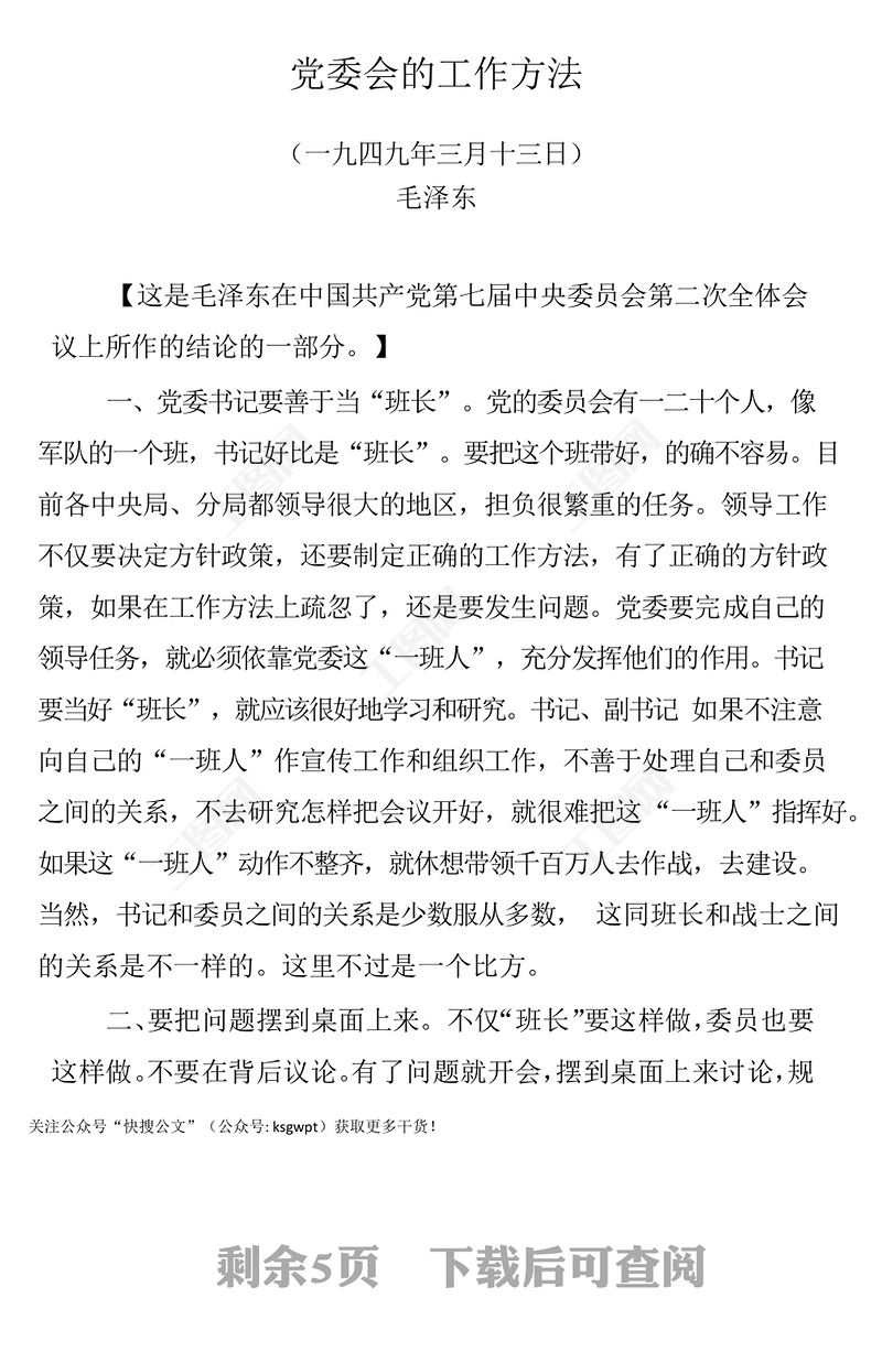 重溫毛澤東《黨委會的工作方法》(講稿)包含