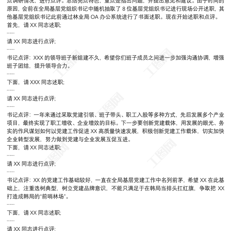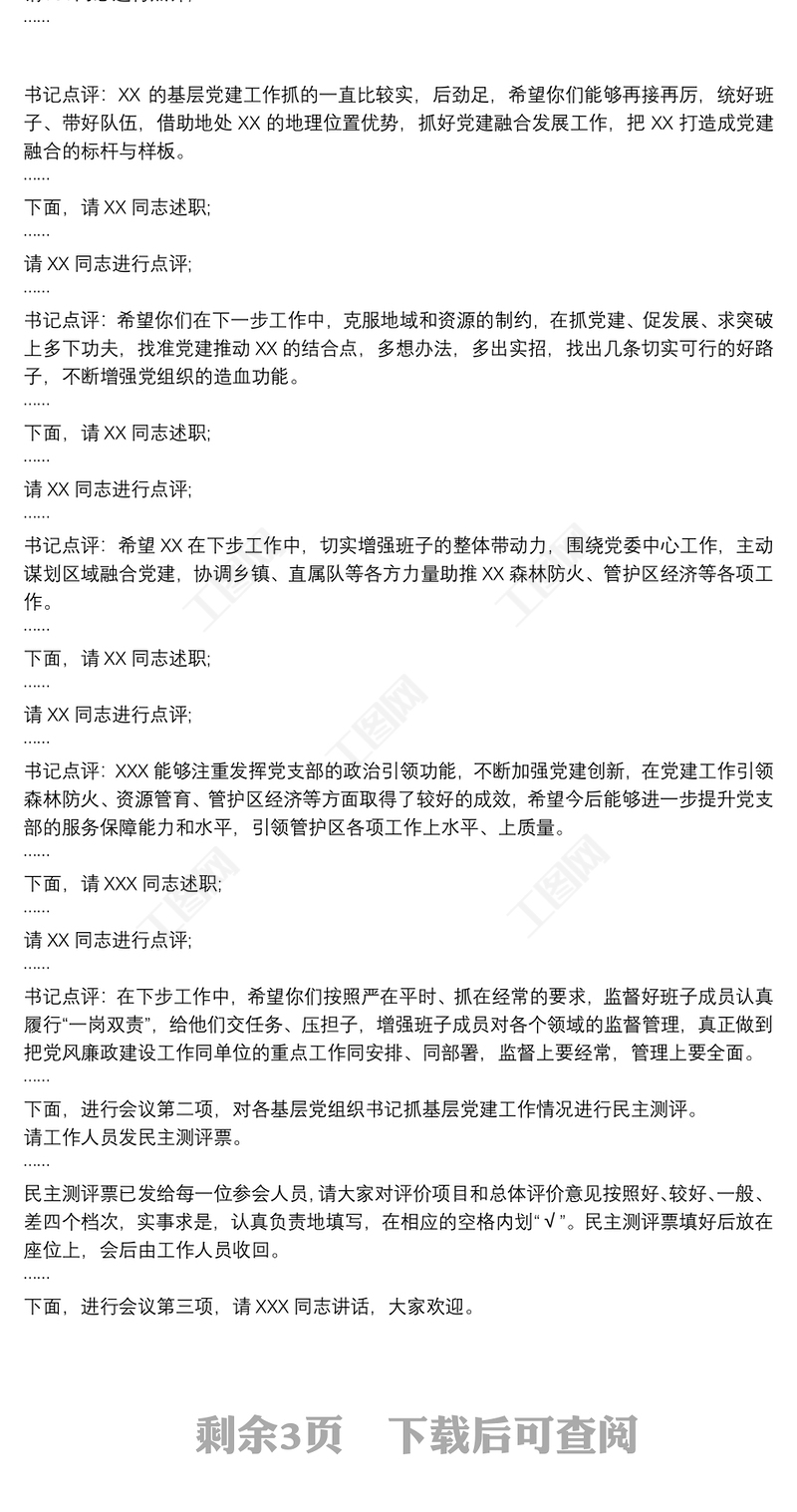 工圖網提供20xx年度基層黨組織書記抓黨建工作述職會議主持詞和講話(終上傳)供會員免費下載。更多精彩黨課PPT素材,盡在工圖網。