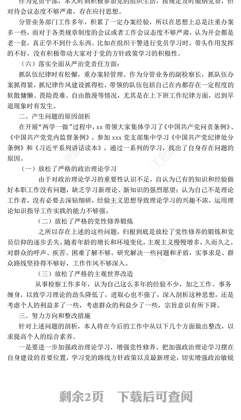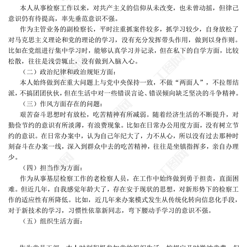 工圖網提供檢察院2017年民主生活會發言材料(對照檢查材料)供會員免費下載。更多精彩黨課PPT素材,盡在工圖網。