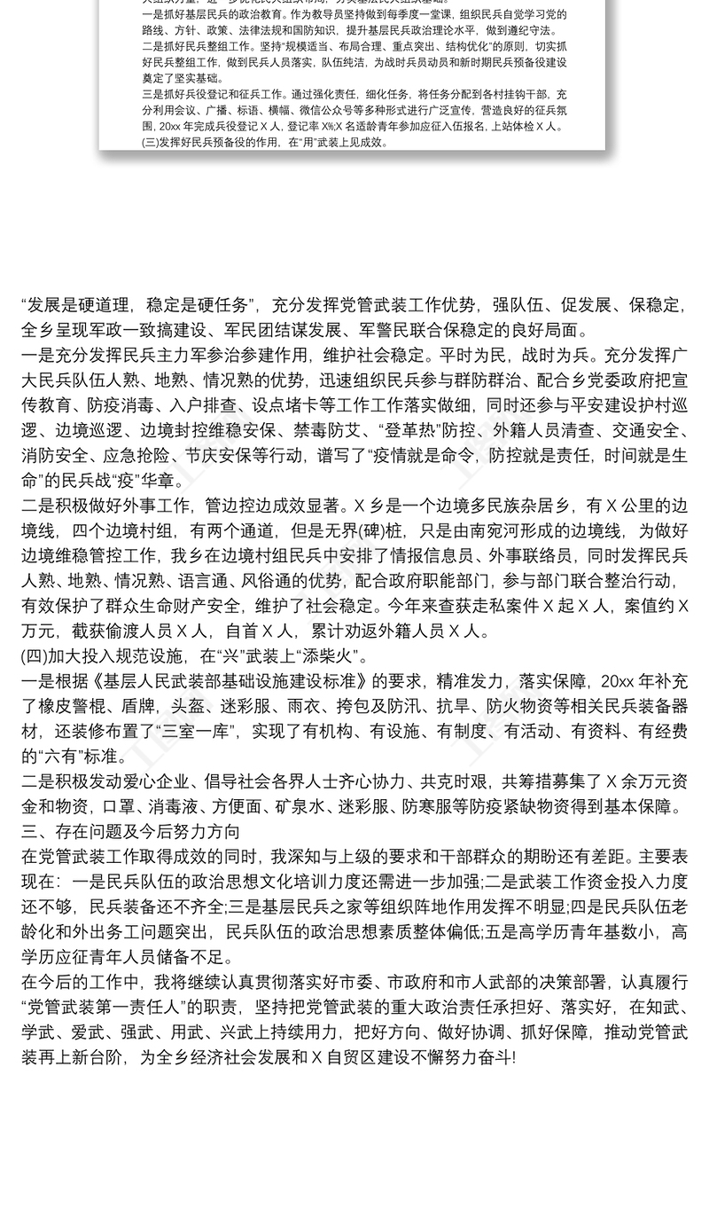 鄉(xiāng)2021年黨管武裝工作述職報告包含