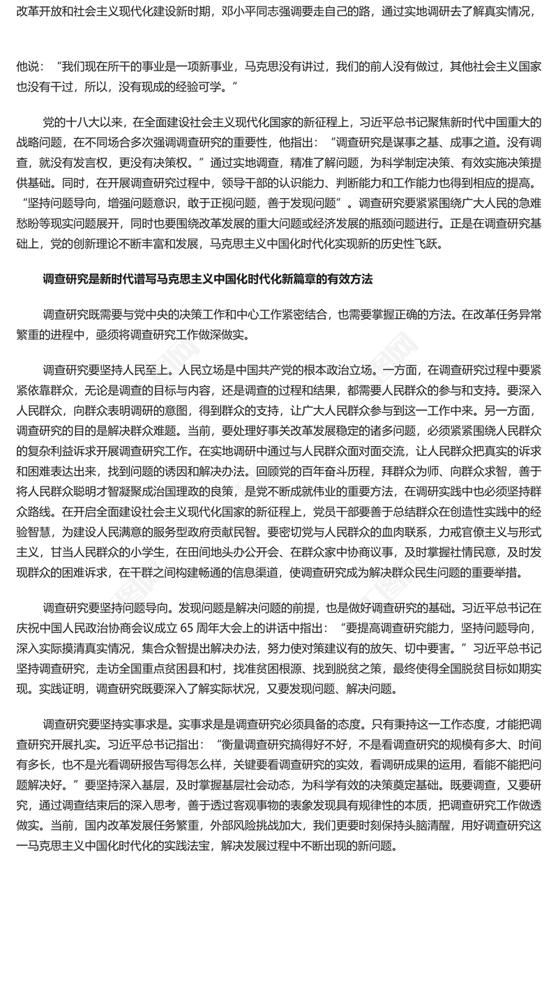 黨課講稿 > 馬克思主義中國化時代化的實踐法寶是調查研究PPT大氣精美風黨員干部學習教育專題黨課課件模板(講稿).DOCX