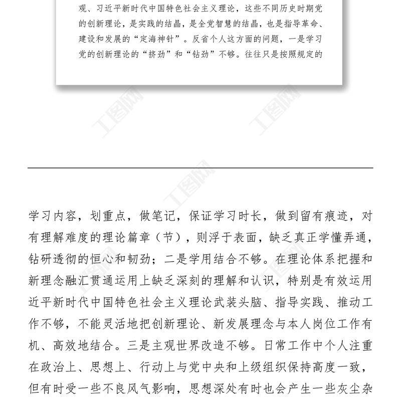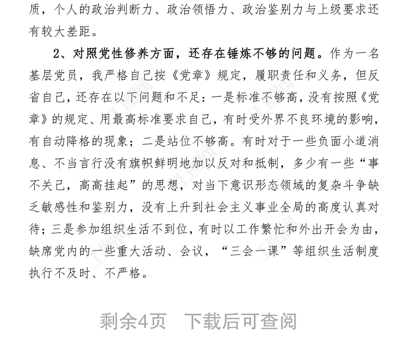 工圖網(wǎng)提供2021黨史學(xué)習(xí)教育專題組織生活會(huì)“四個(gè)方面”對(duì)照檢查材料word文檔供會(huì)員免費(fèi)下載。更多精彩黨課PPT素材,盡在工圖網(wǎng)。