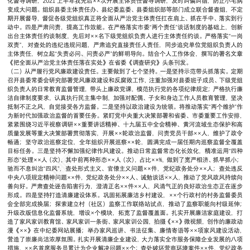 關于20xx年上半年縣委書記履行全面從嚴治黨主體責任情況報告