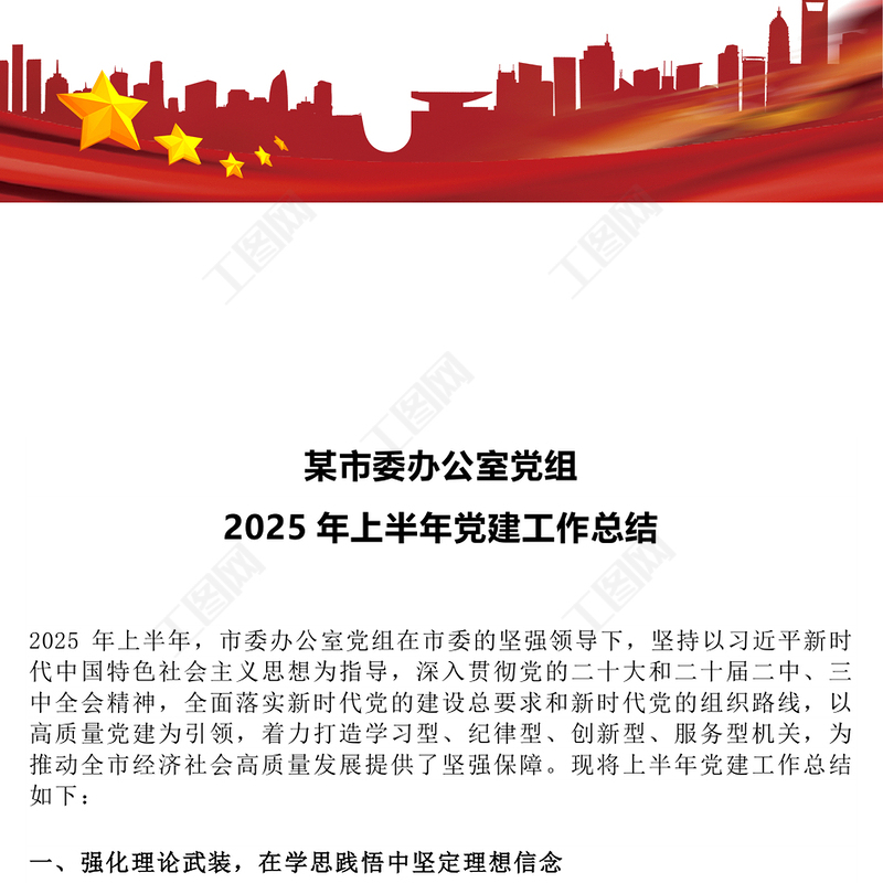 工圖網(wǎng)提供某市委辦公室黨組2025年上半年黨建工作總結(jié)PPT模板下載(講稿)供會員免費下載。更多精彩黨課PPT素材,盡在工圖網(wǎng)。