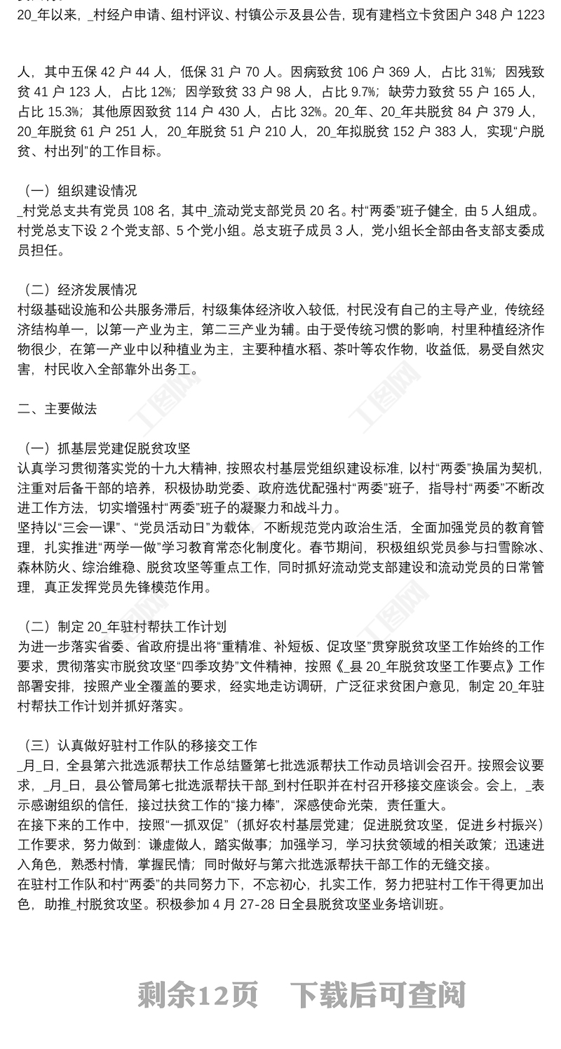 工圖網提供駐村工作隊員工作總結文本優選供會員免費下載。更多精彩黨課PPT素材,盡在工圖網。