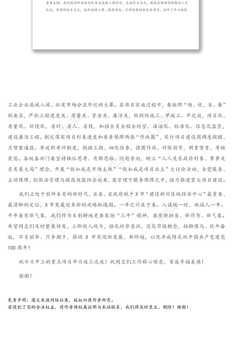 工圖網提供2021年在全市一季度重點項目集中開工儀式上的講話供會員免費下載。更多精彩黨課PPT素材,盡在工圖網。