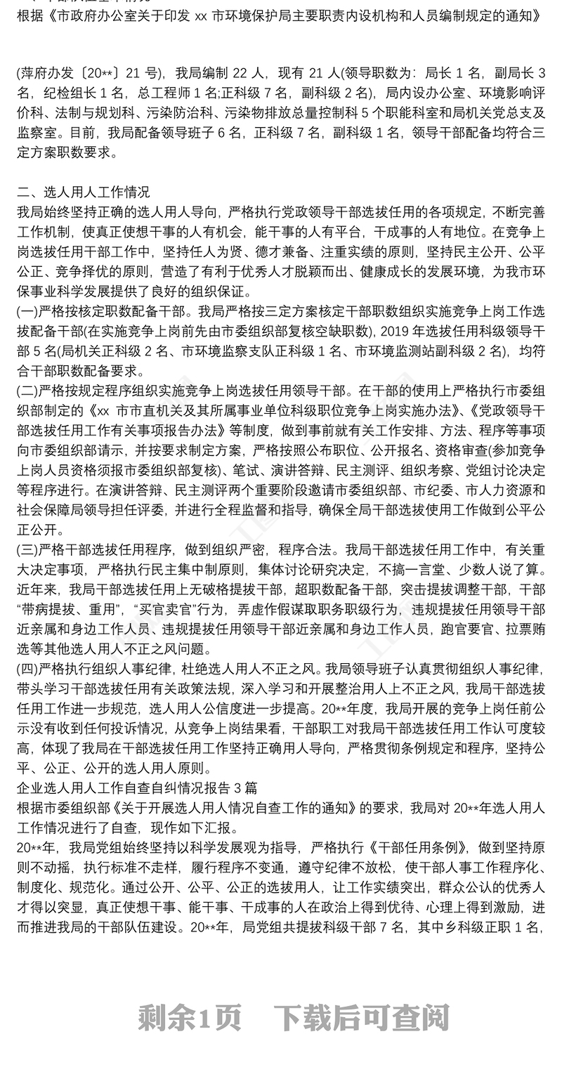 選人用人風氣情況工作匯報范文工作總結報告包含