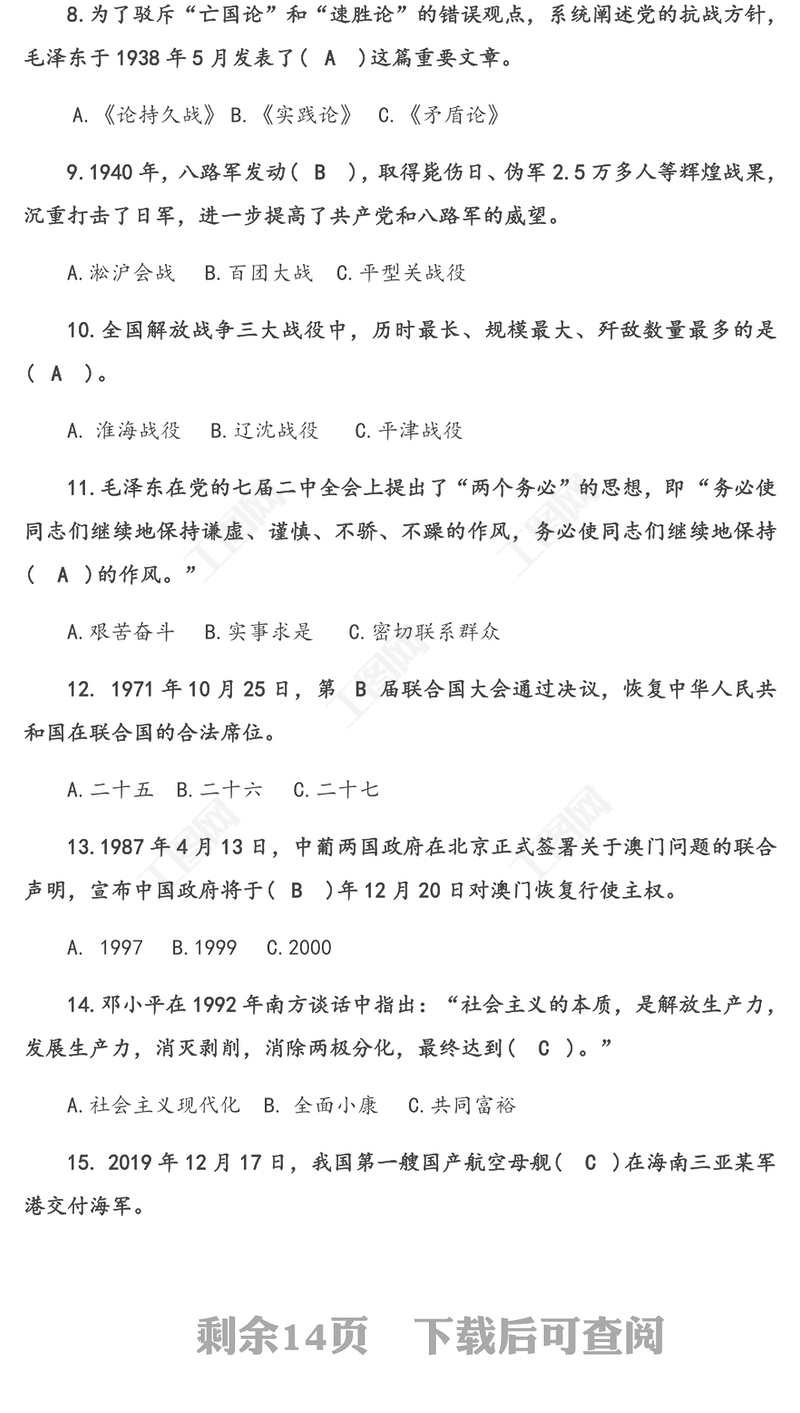 黨史知識100題競答題目,黨史知識,素材資料 Array