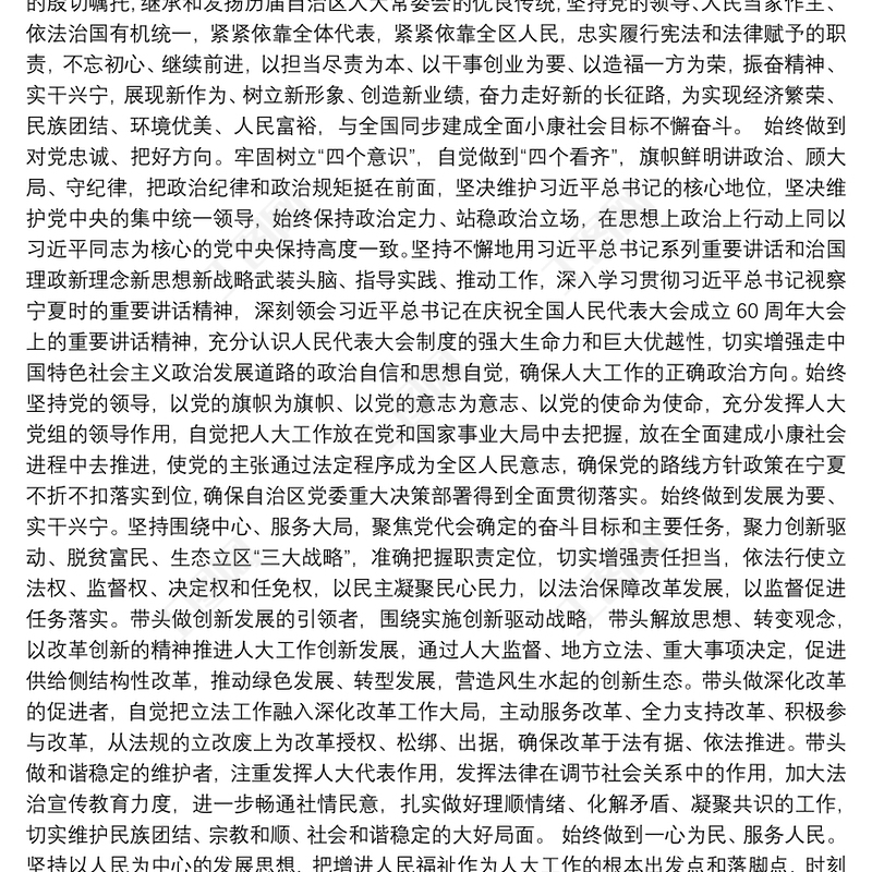 在滄縣第十五屆人大常委會第一次會議上的表態發言包含