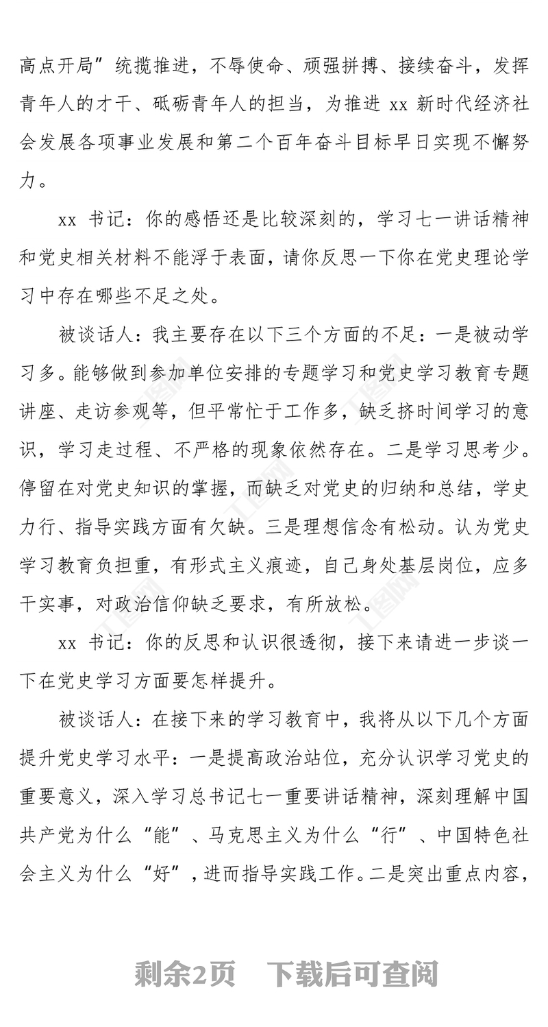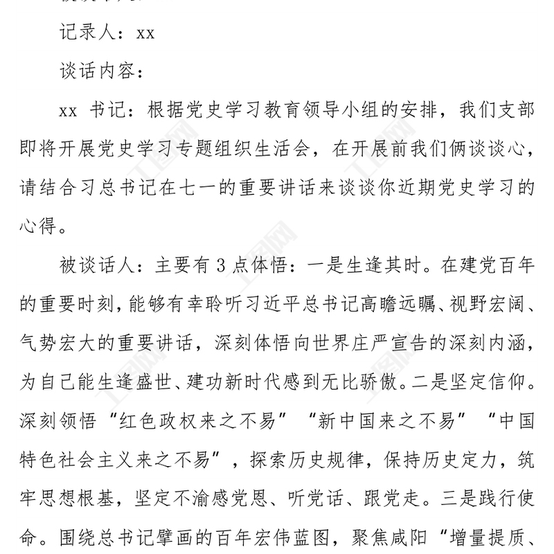 工圖網提供黨史學習教育組織生活會書記和黨員談心談話記錄范文供會員免費下載。更多精彩黨課PPT素材,盡在工圖網。