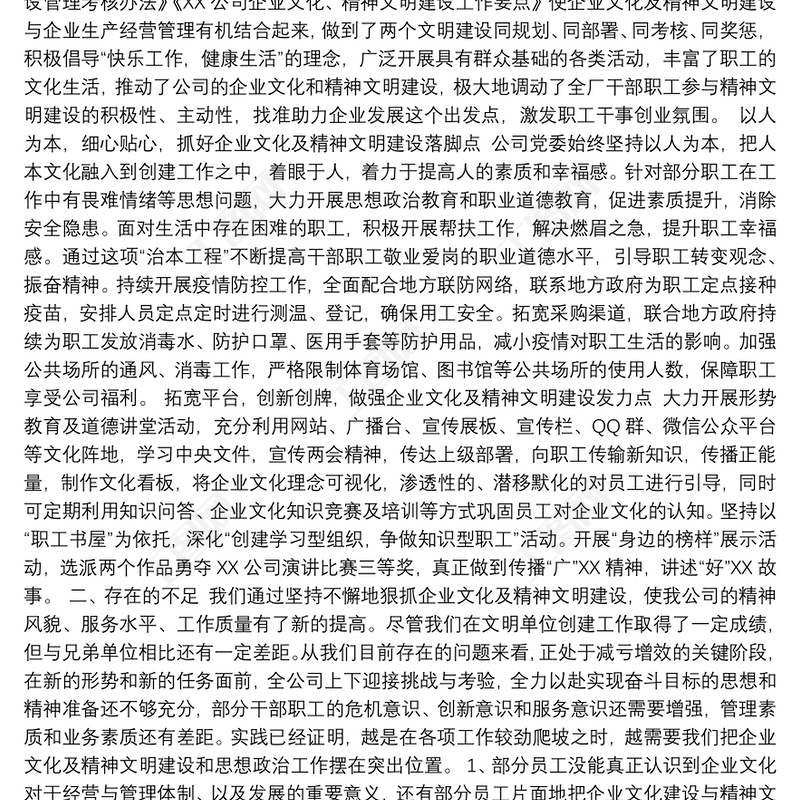 XX公司企業(yè)文化及精神文明建設(shè)總結(jié)
