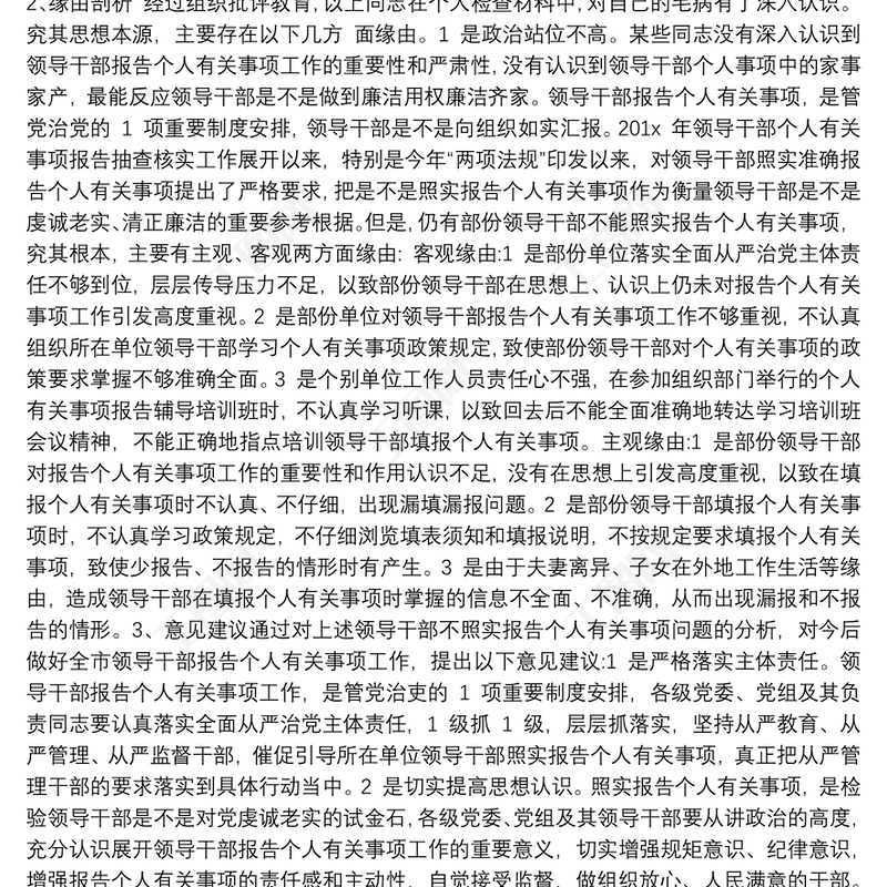 xx市委領導干部不如實報告個人有關事項問題的原因剖析及整改措施 Array