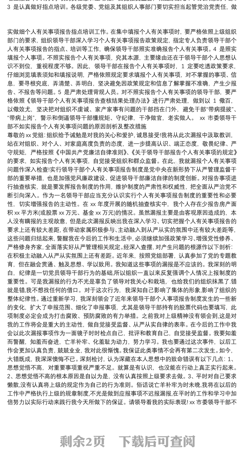 報告 > xx市委領導干部不如實報告個人有關事項問題的原因剖析及整改措施.DOCX