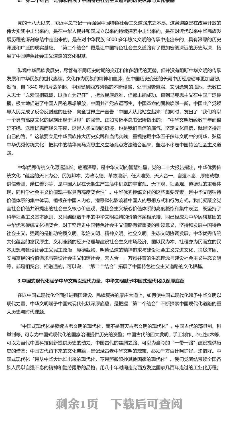 黨課講稿 > 深刻理解和把握“‘結合’筑牢了道路根基”PPT紅色黨政風深入學習文化傳承發展座談會專題課件模板下載(講稿).DOCX
