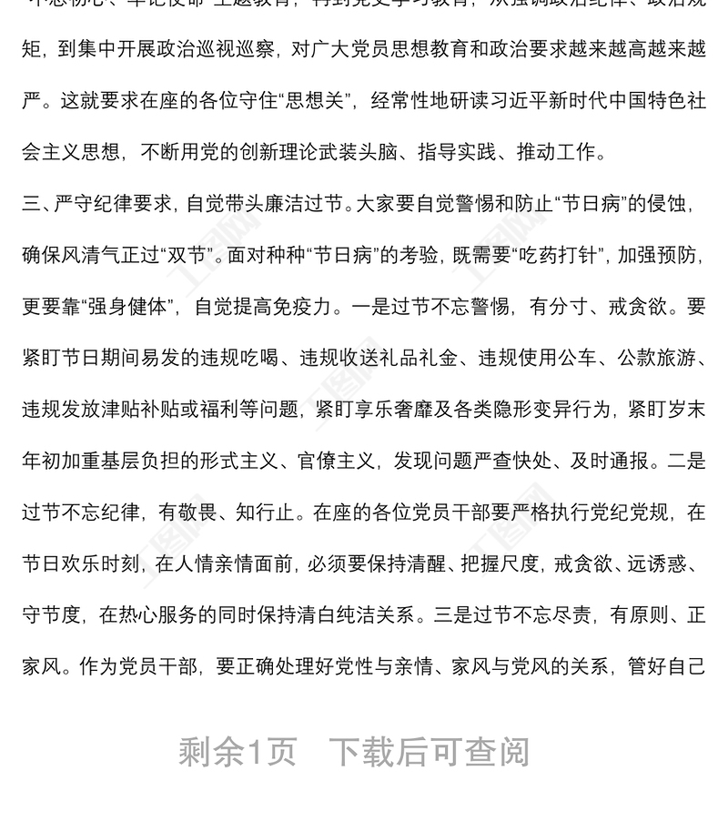 節前集體廉政談話會議講話(廉潔過節,節日)包含