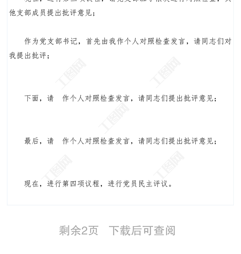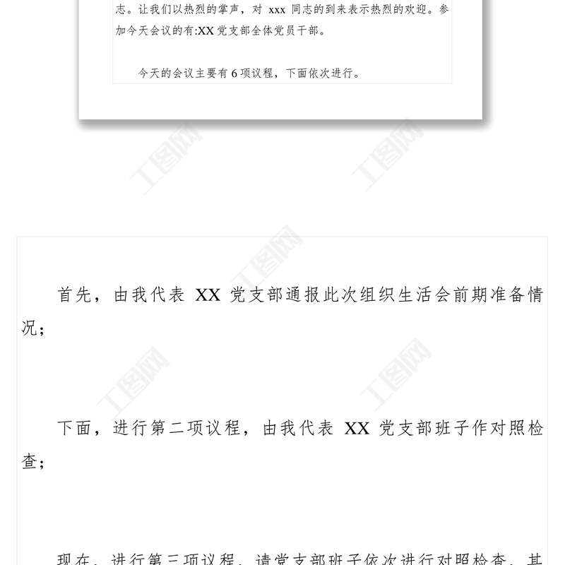 工圖網提供【領導講話】黨支部2019年度組織生活會和民主評議黨員會議主持詞供會員免費下載。更多精彩黨課PPT素材,盡在工圖網。