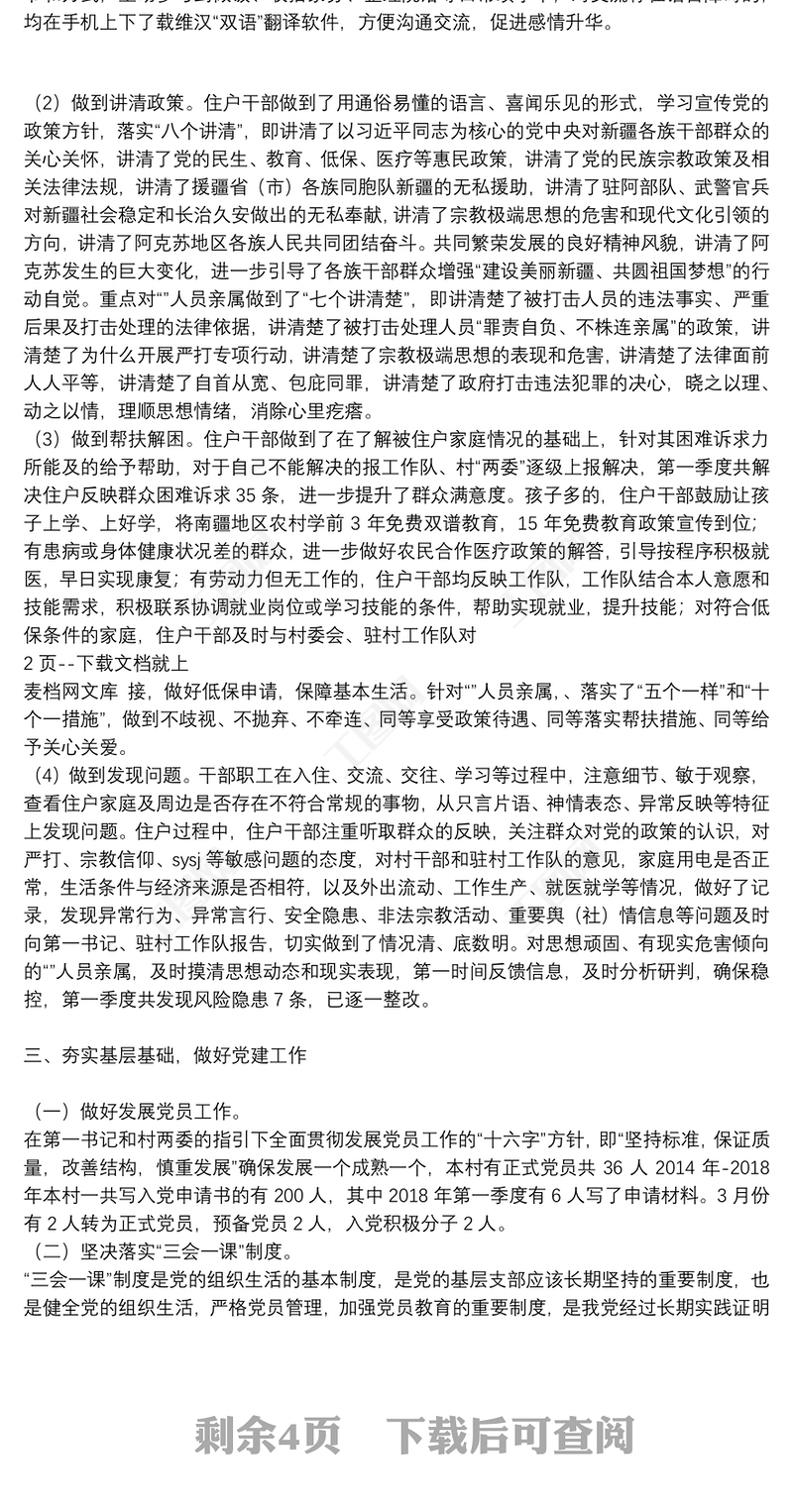 2022新時代訪惠聚駐村工作隊結合七項任務幫帶村干部措施2022年新疆訪惠聚駐村工作隊四項任務經驗材料2022訪惠聚駐村存在的問題及整改措施2022年退役軍人服務中心個人工作總結2021產業工人隊伍建設改革工作總結2021紀委監委年度考核個人工作總結駐村干部黨課講稿2022年村干部個人疫情防控工作總結2022退役軍人全面深化改革工作總結黨支部組織委員個人工作總結20222023新時代中國特色社會主義思想專題教育個人工作總結范文2023黨員教師新時代中國特色社會主義思想個人工作總結2023社區黨建工作總結個人2023黨建月個人工作總結2023個人黨風廉潔建設工作總結2023學校支部書記個人工作總結