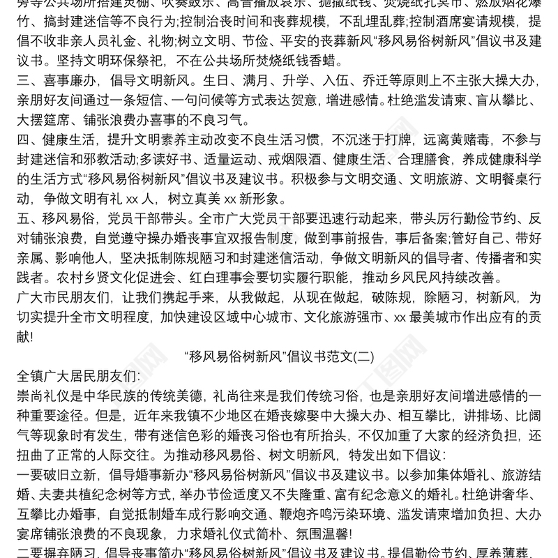 推動移風易俗樹立文明新風倡議書精選三篇包含