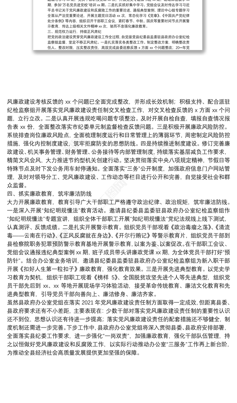 縣政府辦公室黨組落實黨風廉政建設責任制工作匯報