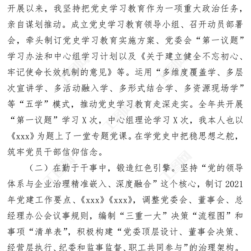 2021年國企基層黨組織書記抓黨建工作述職報告包含