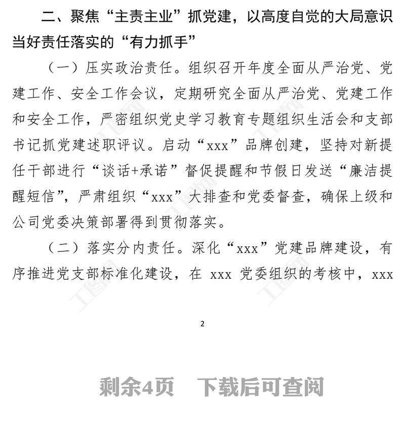 工圖網提供2021年度公司黨組織書記抓基層黨建工作述職報告-1供會員免費下載。更多精彩黨課PPT素材,盡在工圖網。